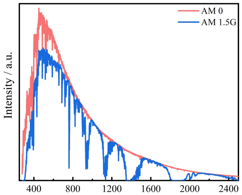 AM 1.5G出自于一项与太阳能相关的ASTM(American Society of Testing Materials 美国材料实验协会)标准[2],人们为了便于对在不同时间和地点测量的太阳能转换效率进行比较,将AM 1.5G定义为太阳能转换系统标准测试的参考光谱,并规定标准的AM 1.5G辐照度为1000 W/㎡。